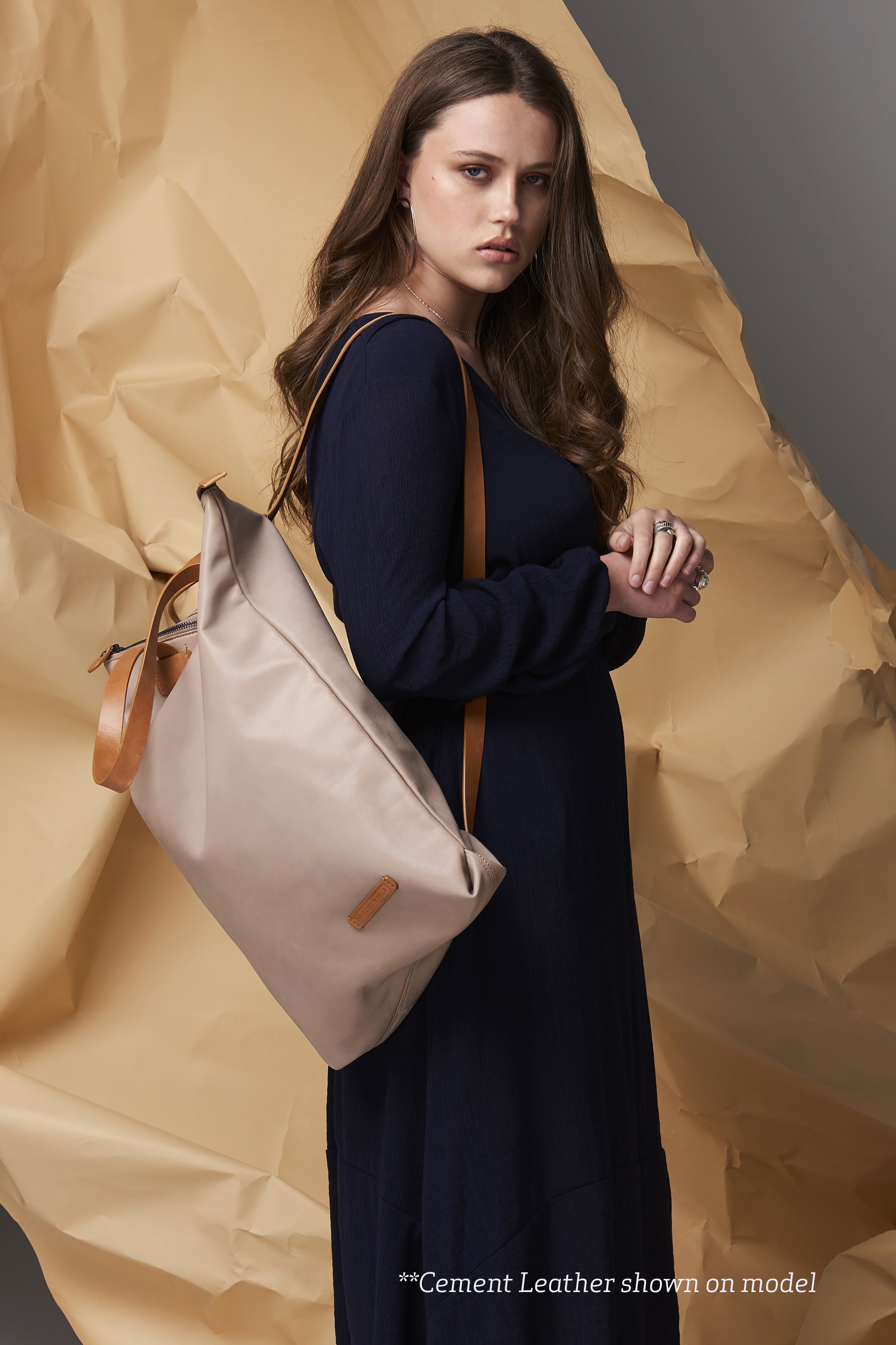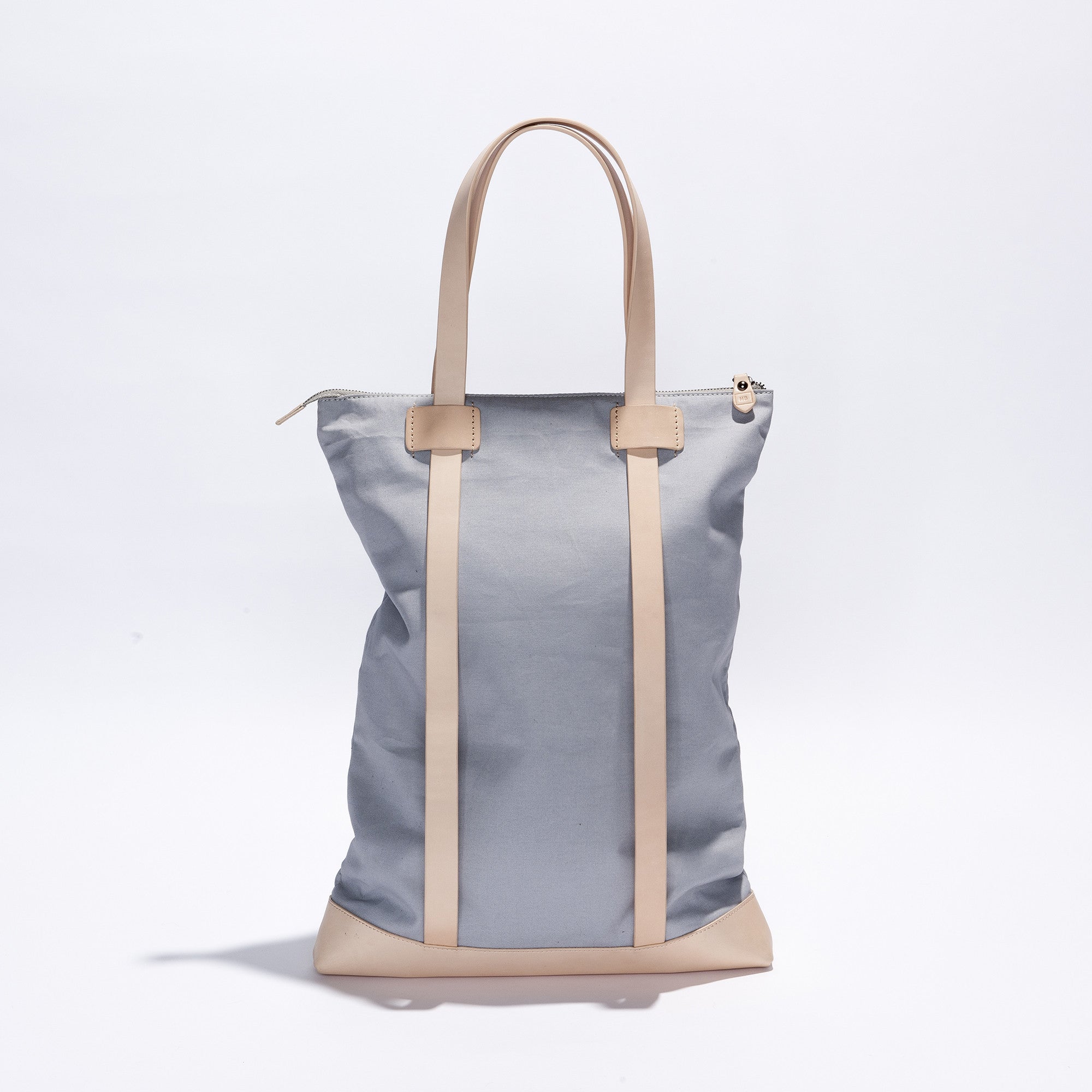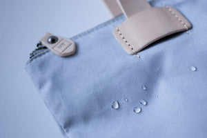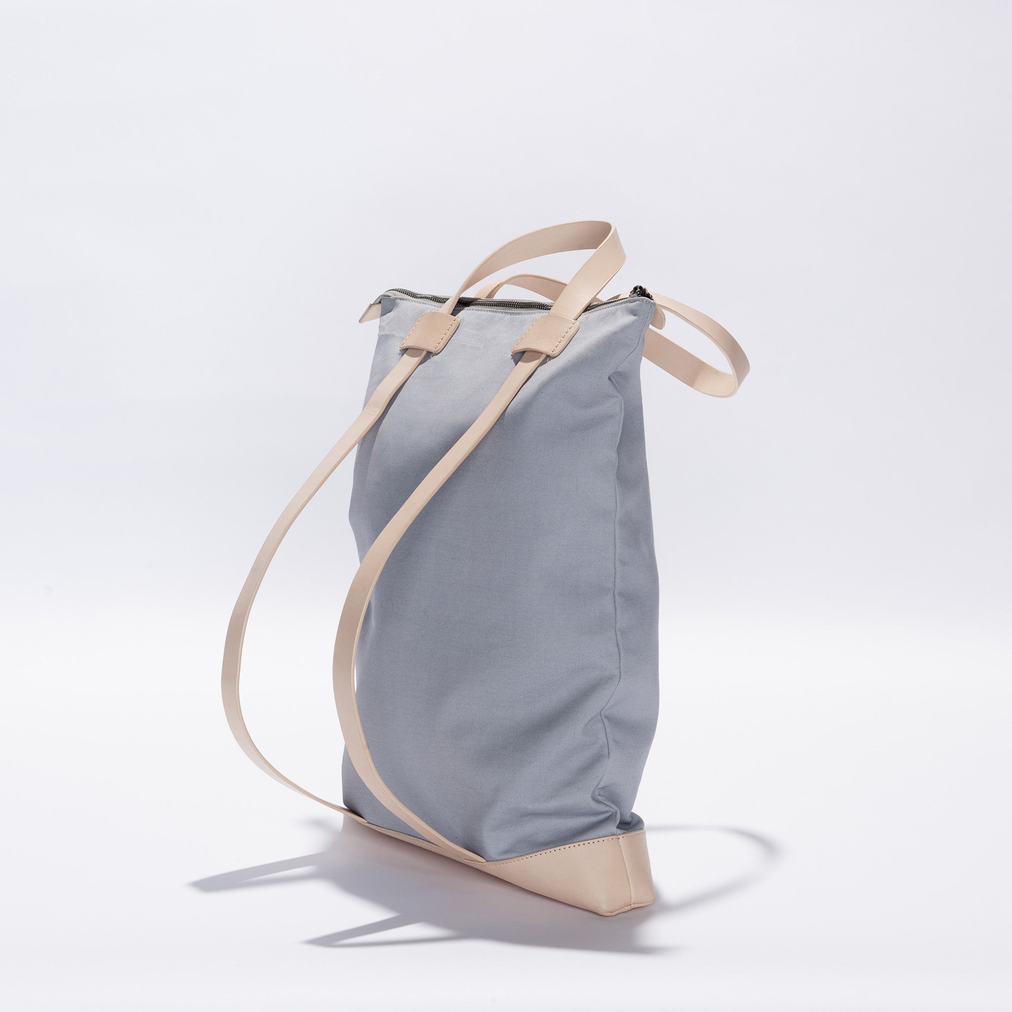 A versatile piece that can be worn over the shoulder or as a backpack. Made from beautiful water resistant canvas with contrast nude leather handles that slide down through leather loops to instantly convert for use as a backpack.